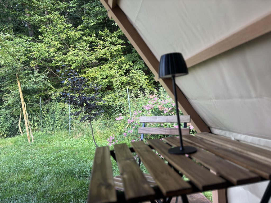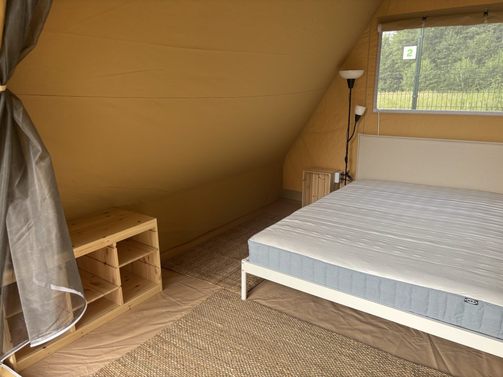 Къмпинг Чудно село предлага на посетителите 4 Глемпинг палатки, разположени в една от най-красивите зони на къмпинга – до реката в зона А. Къмпинга предлага невероятна гледка както към зашеметяващият връх Ком и Берковски Балкан и обширните зелени поля. Палатките са разположени така, че да са достатъчно уединени, за да ви осигурят цялото необходимо пространство за почивка и релаксация. Всяка Глемпинг палатка в къмпинг Чудно село, разполага с два шезлонга за допълнителен комфорт.